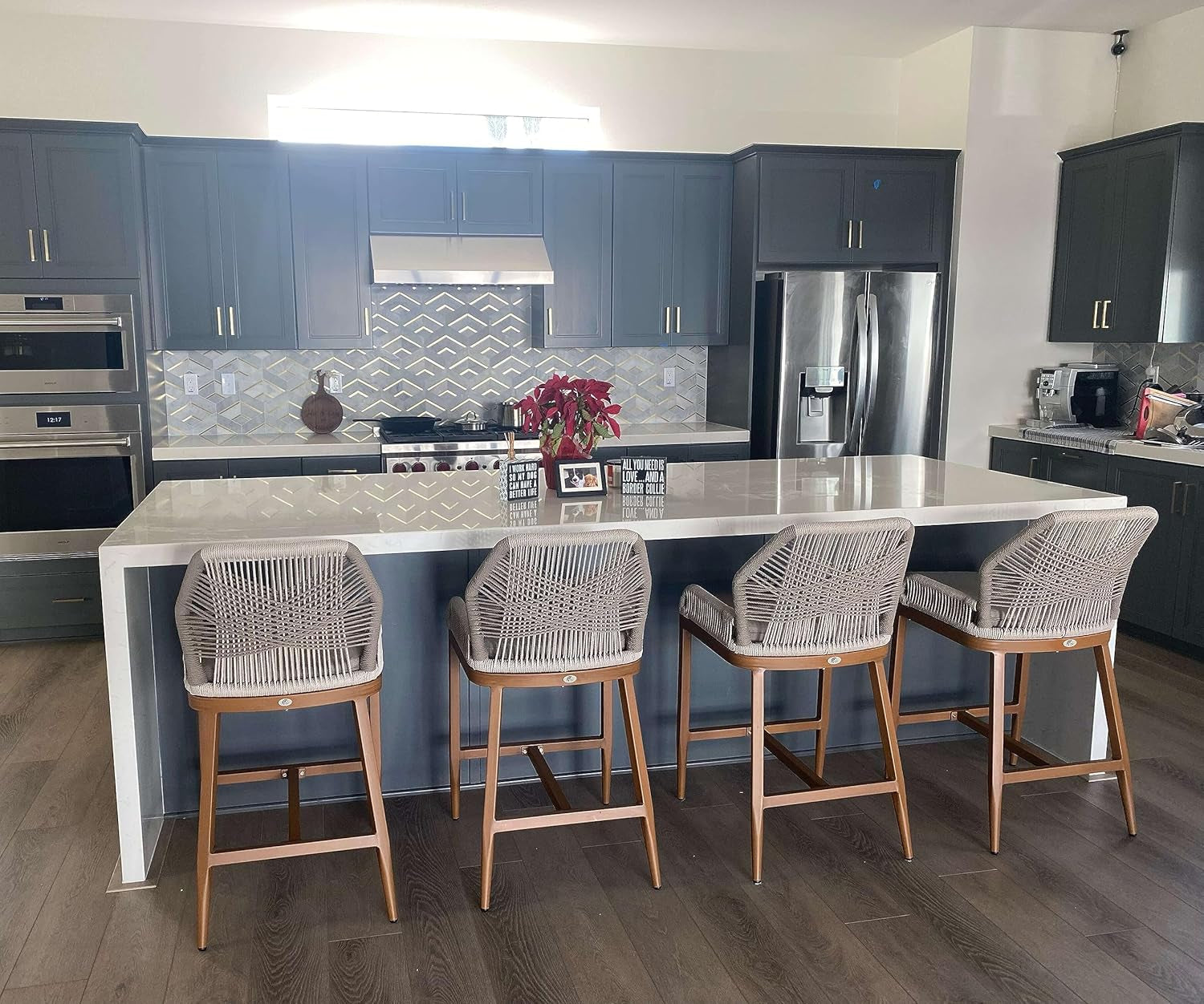 • Seating dimension: Includes 4 pieces bar stools (21.65"D x 20.67"W x39.56"H). 24.8" seat height is suitable for 34" - 38" height counters. Load capacity of each stool is 360 lbs.