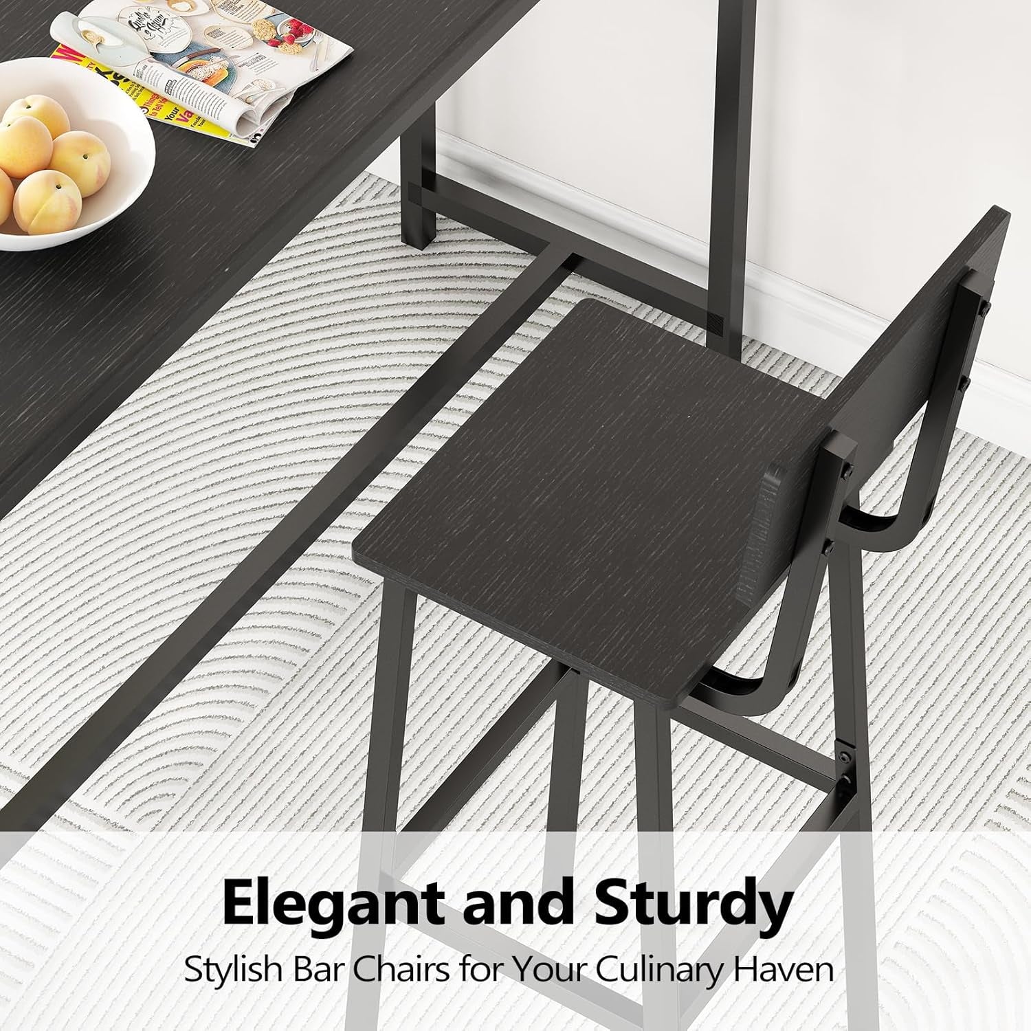 Set of 2 Bar Stools, Tall Bar Stools with Backrest and Footrest, Tall Bar Chairs, Industrial Style Counter Height Bar Stools for Dining Room, Kitchen, Bar Rustic Black