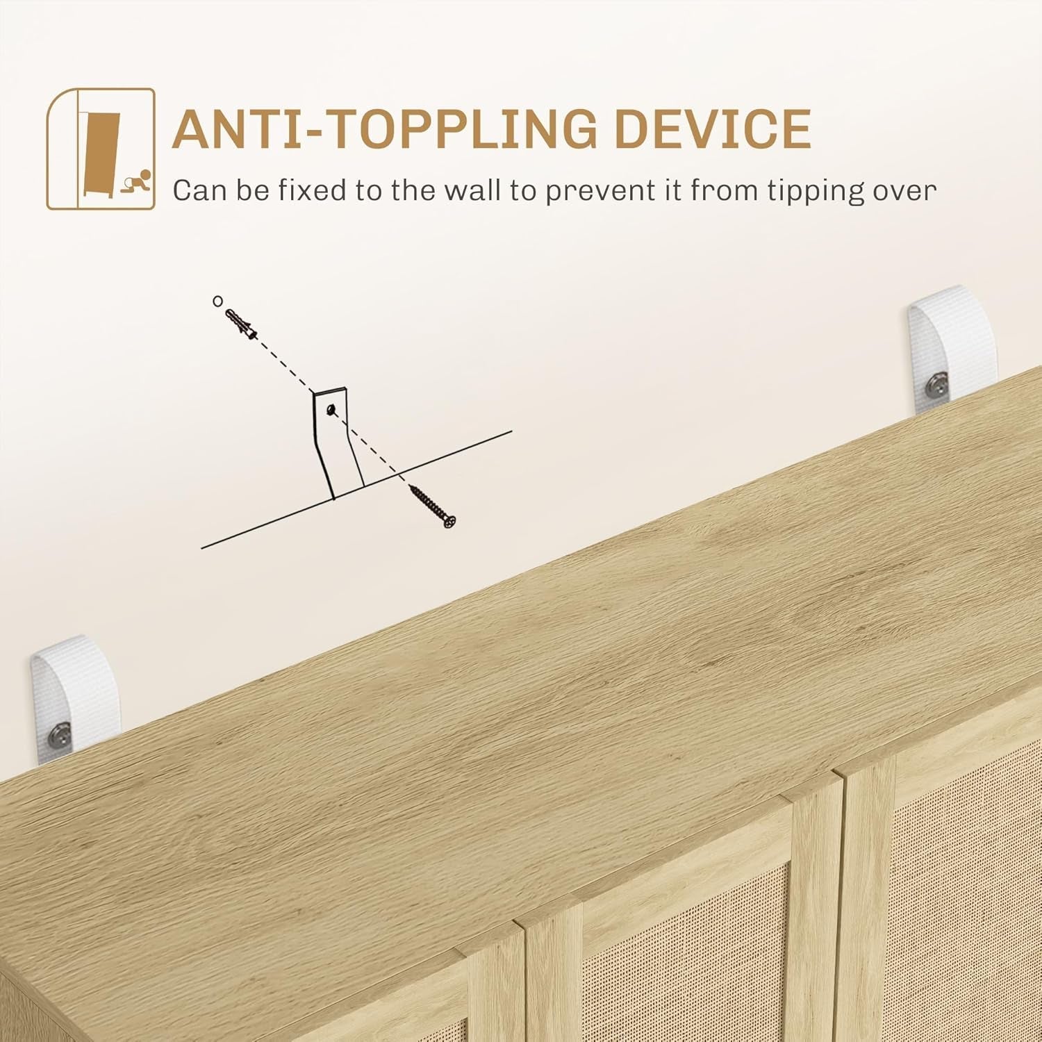 Sideboard Buffet Cabinet, Kitchen Cabinet, Coffee Bar Cabinet with 4 Rattan Doors and Adjustable Shelves, Natural