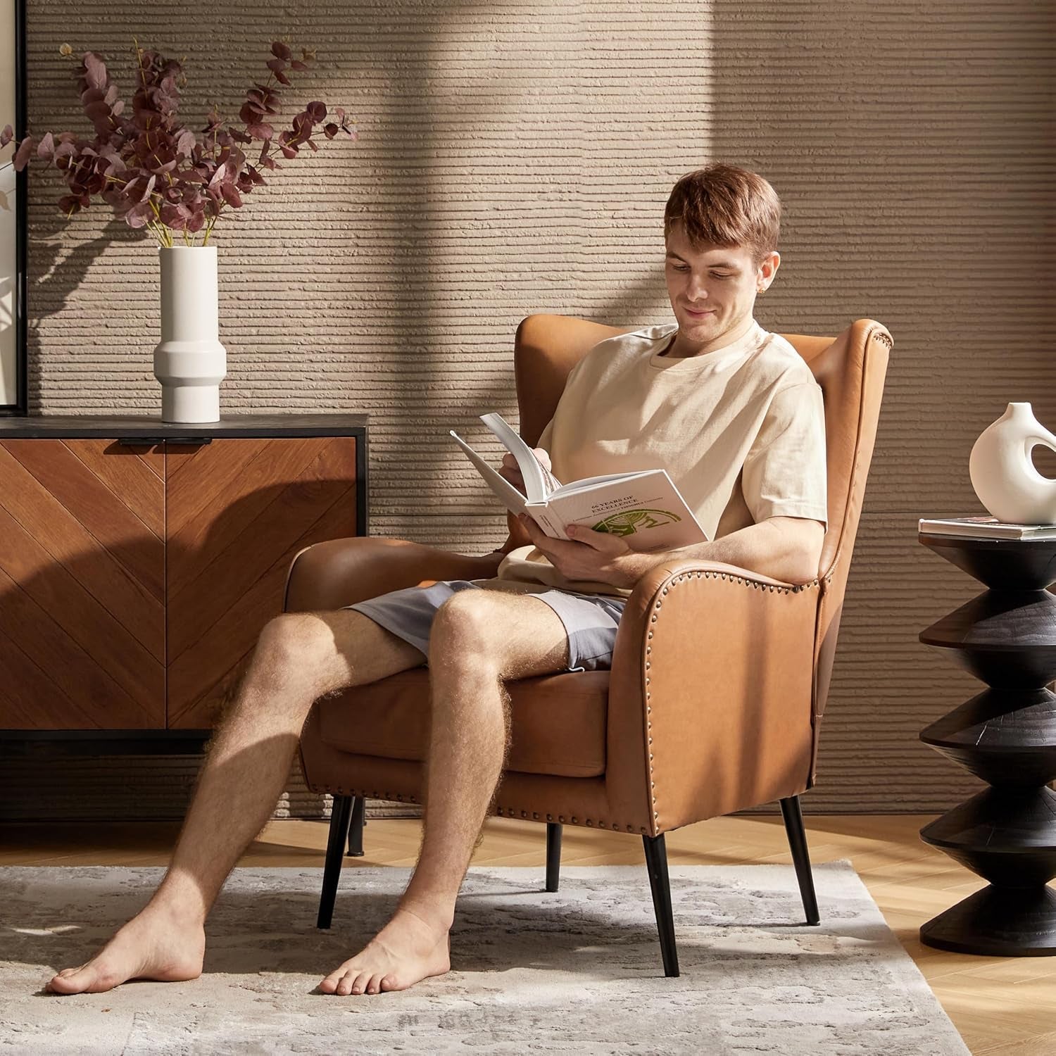 Transform your space with timeless elegance and everyday comfort—our Faux Leather Wingback Accent Chair blends vintage charm with modern practicality, creating a warm, inviting spot for reading, conversation, or a quiet moment to unwind.