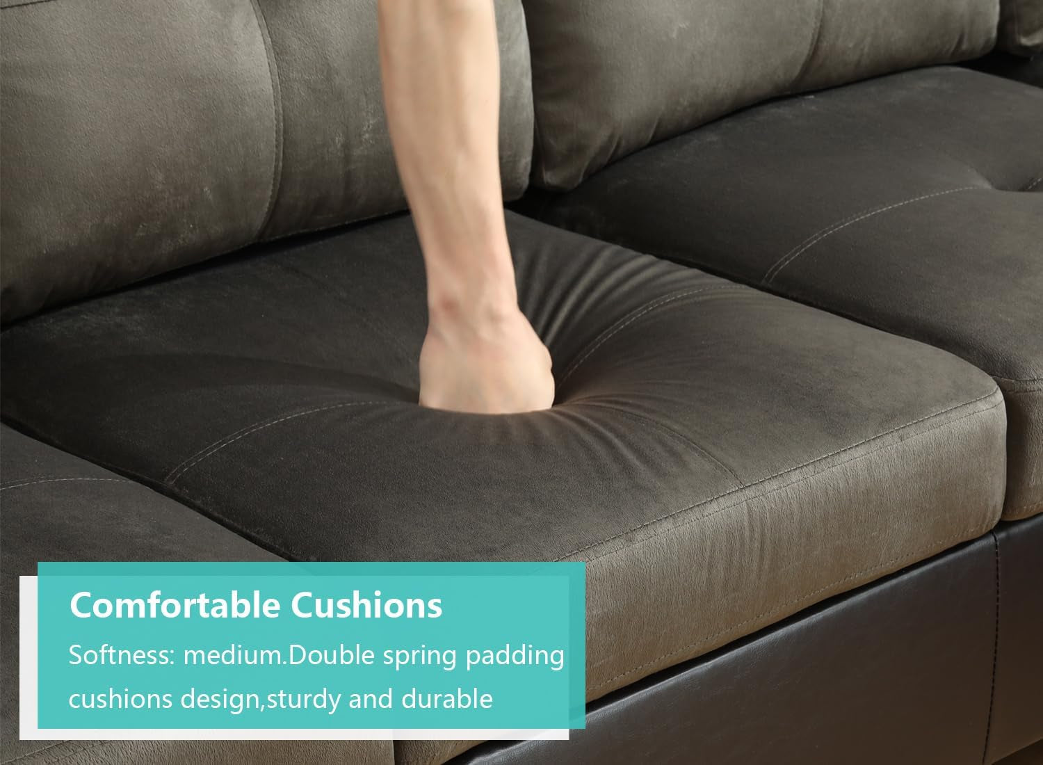 - 🏨L Shape Couch: Modern L Shaped Sectional Couch Set with Sofa, Chaise, Storage Ottoman and Pack of 2 Toss Pillows.