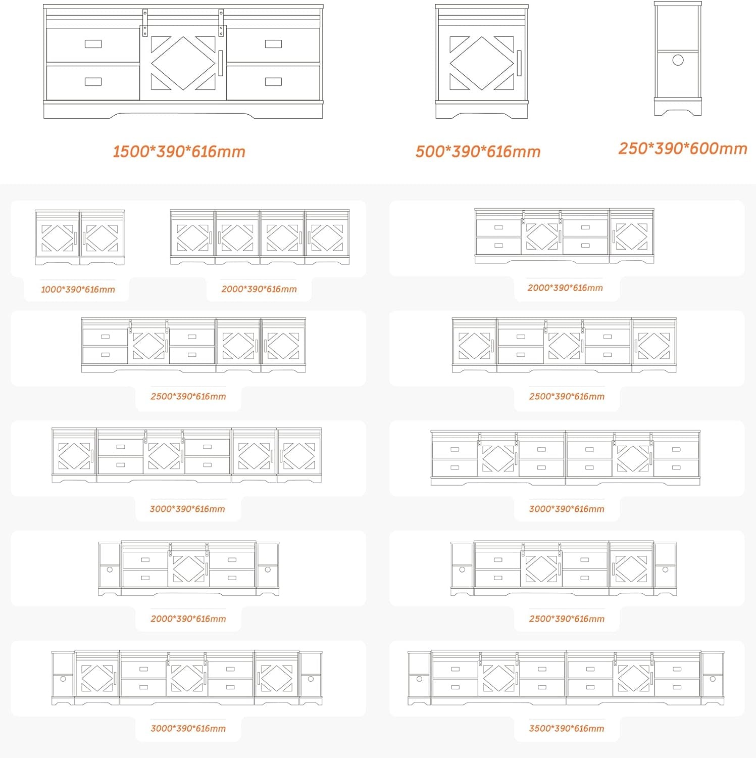 - 【Farmhouse Style】: Product Measured: 98.4" W × 15.4" D × 24.3"H, fits for flat curved screen TVs up to 110''. It features a perfect blend of modern farmhouses. The antique white finish delivers a naturally aged feel and creates a cozy and retro vibe. Suitable for all decor style and increase aesthetic for your living room.