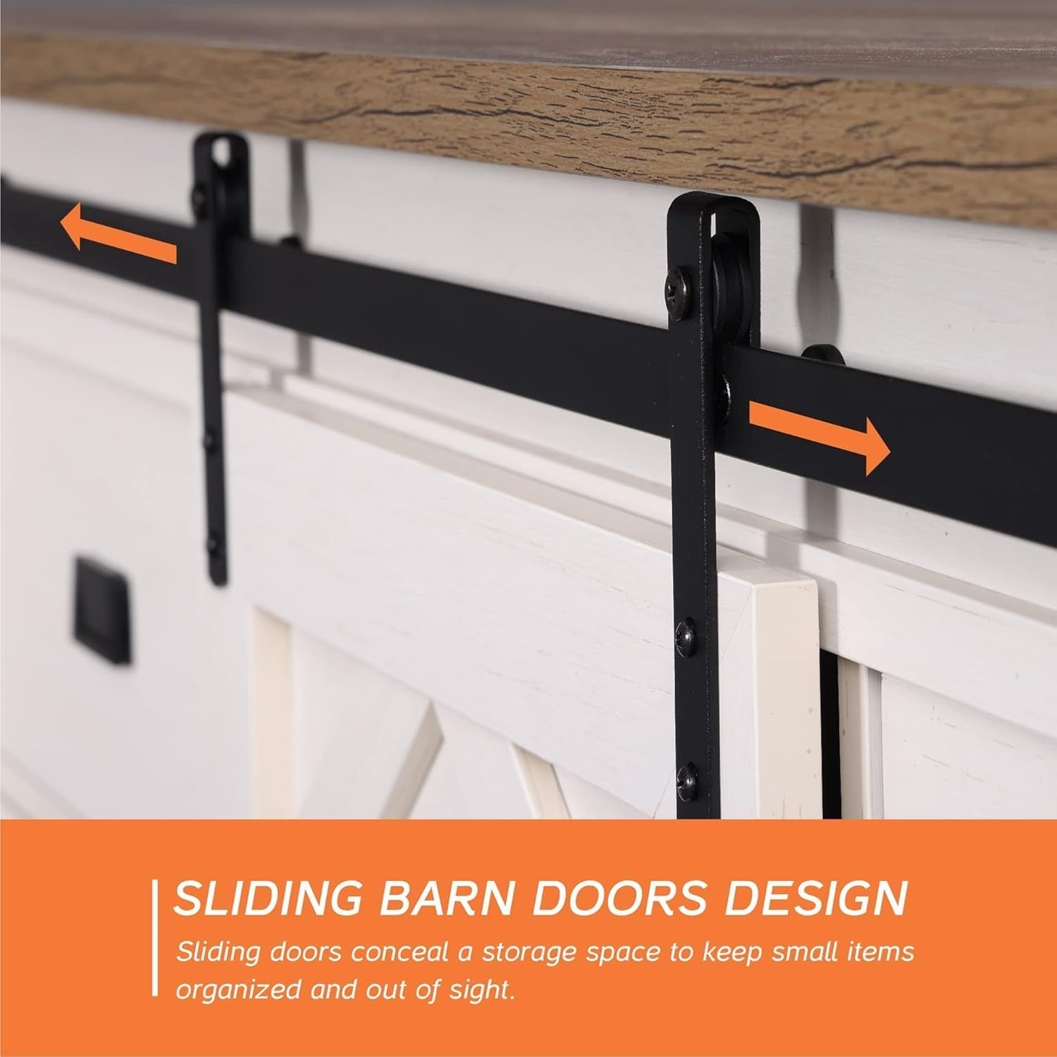 - 【Multifunctional】Featuring a sliding barn door, adjustable shelf in the center behind the barn door, and 4 drawers, this media console offers plenty of storage or display space for CDs, DVDs, game cartridges, decorative items, and more. The sliding barn doors on the TV cabinet make it easy to access items while keeping dust out. You also have the option of sliding the doors to either side of the TV stand to display items on the shelves inside.