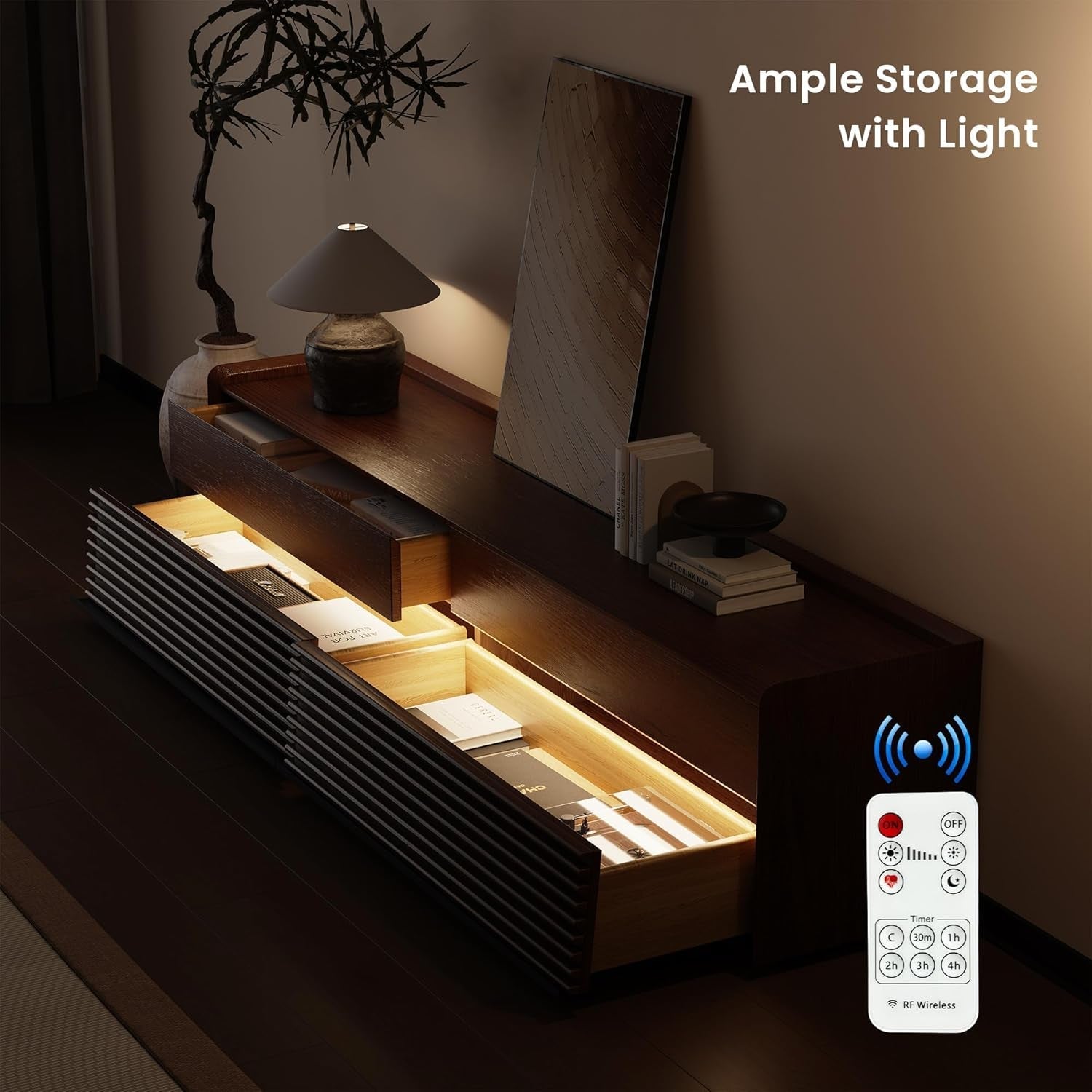• Integrated LED Lighting: Enjoy the convenience of built-in LED lighting. The warm, 6-level adjustable lighting with remote control enhances the visual appeal of your TV console and makes your displayed items stand out.